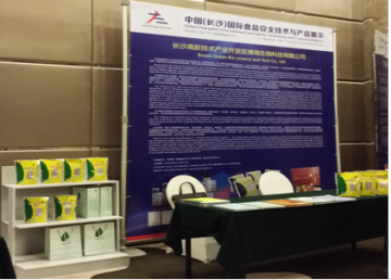 本次活动的主题特别突出食品安全和产业合作, 特别强调食物链各环节的安全和原料来源标准化,为此我公司特别受邀参加了本次活动,并展示了涉及食物链源头安全的动物用无抗饲料添加剂,受到了国内外专家学者的肯定及各位参展人员的高度关注。我公司在这次推广周上展出的产品,是近年来推出的高端无抗饲料添加剂系列产品。该类产品着重解决食物链的源头危害,如激素和药物残留问题,产品的研发推广获得了长沙市科技计划重点项目的滚动支持,2014年已获得3项国家发明专利,企业累计出口创汇近千万美元。