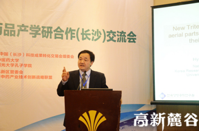 交流会上,湖南省科技厅党组副书记、副厅长杨治平,湖南中医药大学党委副书记秦裕辉分别作了讲话。韩国专家团李炯圭教授、权东烈教授、张承烨部长、金伦喆教授、李英恩教授分别作了题为《New Triterpene glycosides from Weigelasubsessilis and their biological activities》、《糙叶五加皮抗炎活性研究》、《韩国药用植物开发现状和韩中医药制度差异》、《Isolation of Prenylated Flavonoids from Cudraniatricuspidata Roots and Their Anti-inflammatory Effects》、《韩国食品市场现状和基于韩中关系为中心的的未来发展方向》的专题报告。韩国圆光制药公司、全北茂朱郡药材栽培联合会、加加食品集团股份有限公司、湖南春光九汇现代中药有限公司、湖南省中医药科技发展总公司分别对公司的产品和技术进行了推介。