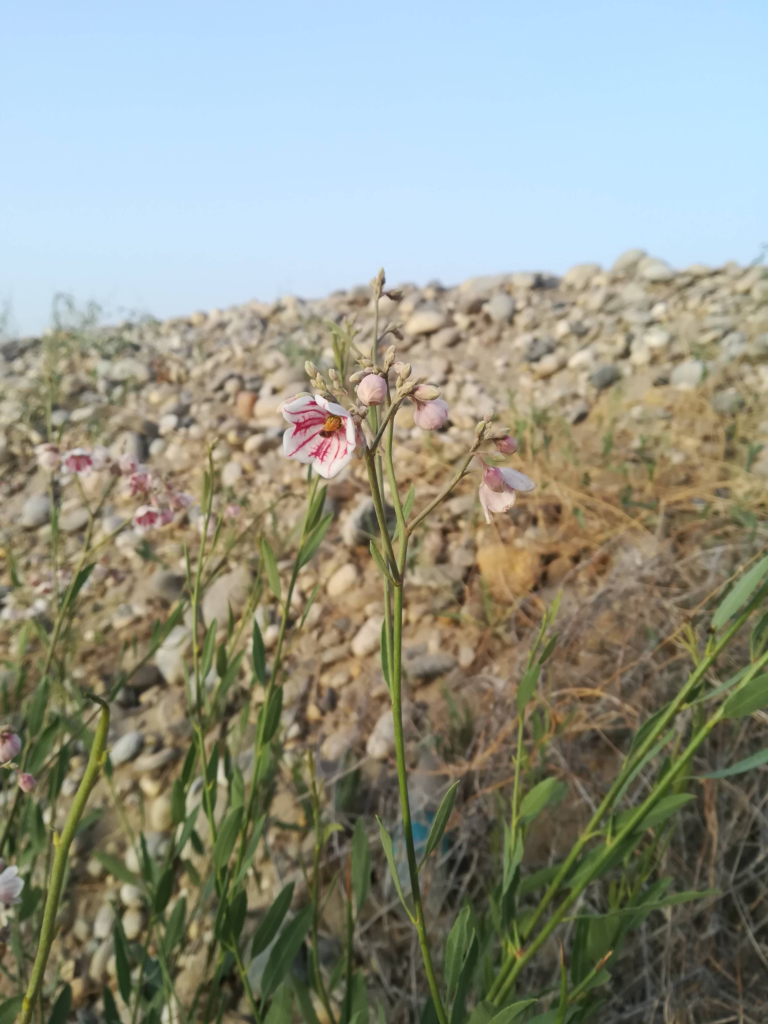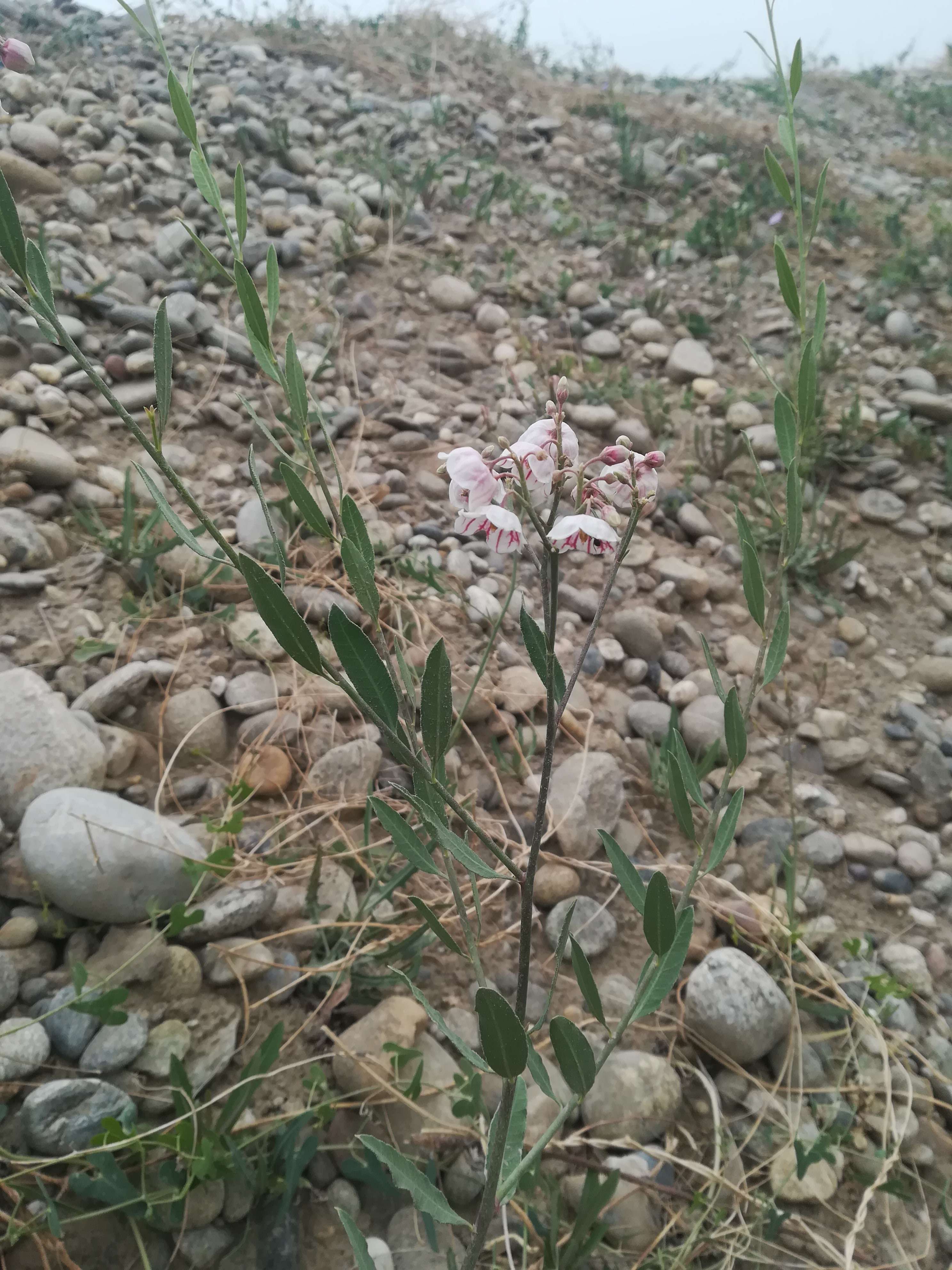 大叶白麻,拉丁学名:Poacynum hendersonii(Hook. f.) Woods.,别称:罗布白麻、野麻、大花罗布麻。属于夹竹桃科直立半灌木,高0.5~2.5米,具乳汁。枝条倾向茎的中轴,光滑。叶互生,坚纸质,椭圆形至卵状椭圆形,长3~4.3厘米,宽(0.4)1~(2.3)1.5厘米。花萼5裂,花冠下垂,外面粉红色,里面稍带紫色,宽钟状;雄蕊5枚,花药箭头状;花盘肉质,环状。蓇葖果双生,倒垂,长100~300毫米,直径3~4毫米。种子有白色绢毛。可作为纺织、造纸原料,也是很好的蜜源植物。