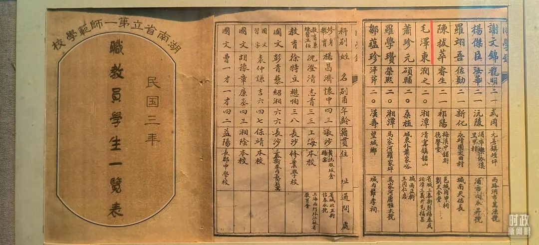 △1914年湖南公立第一师范学校教职员学生一览表。(总台央视记者范凯拍摄)