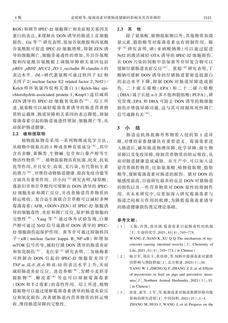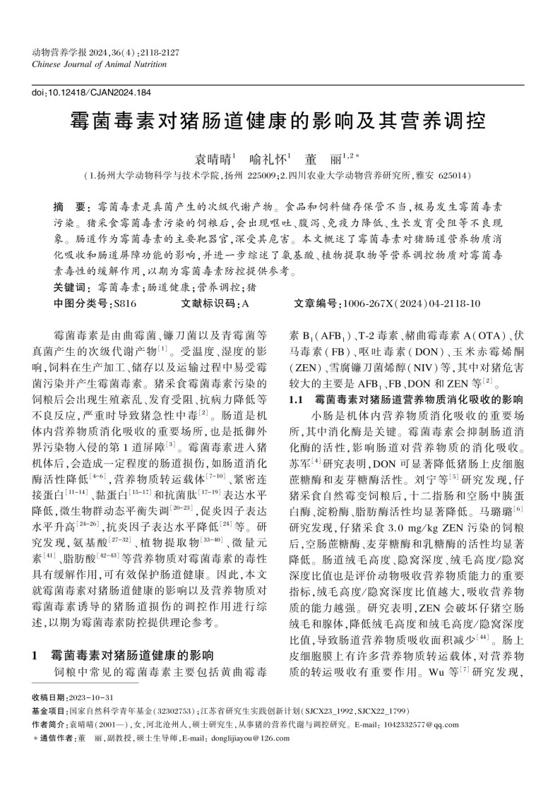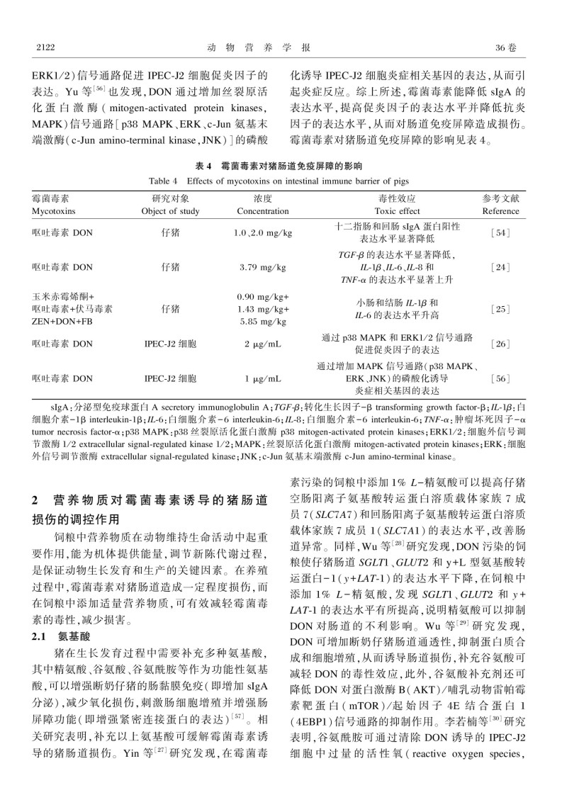 霉菌毒素对猪肠道健康的影响及其营养调控