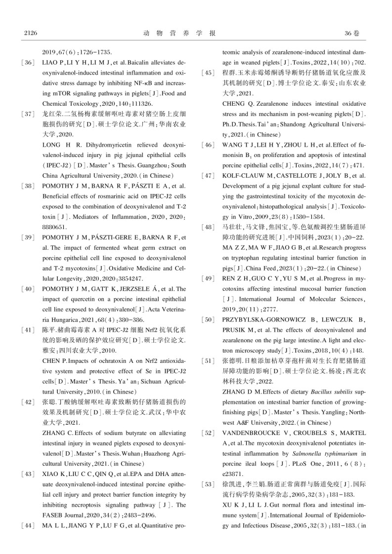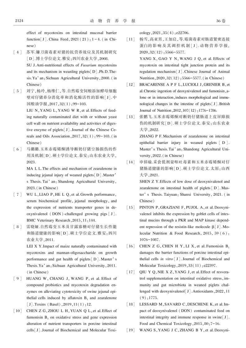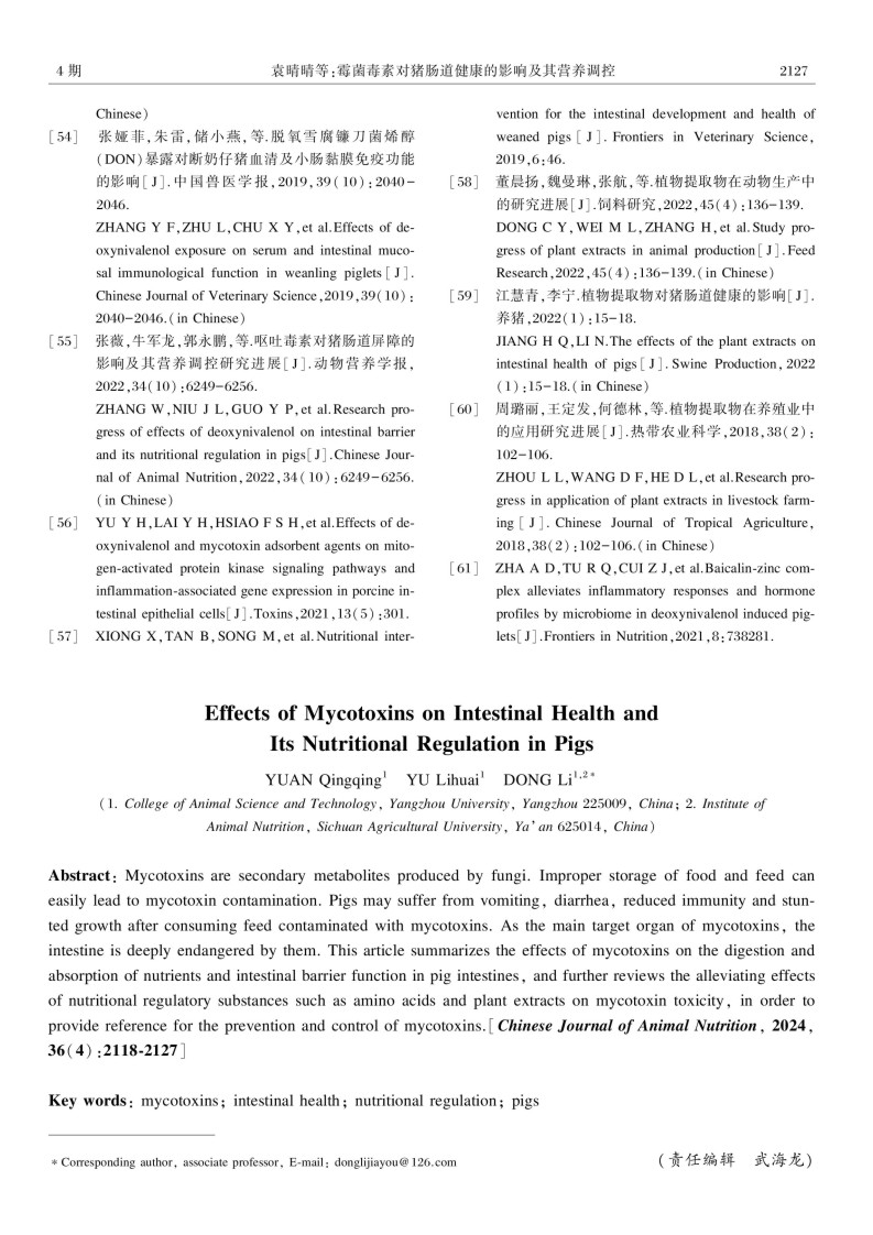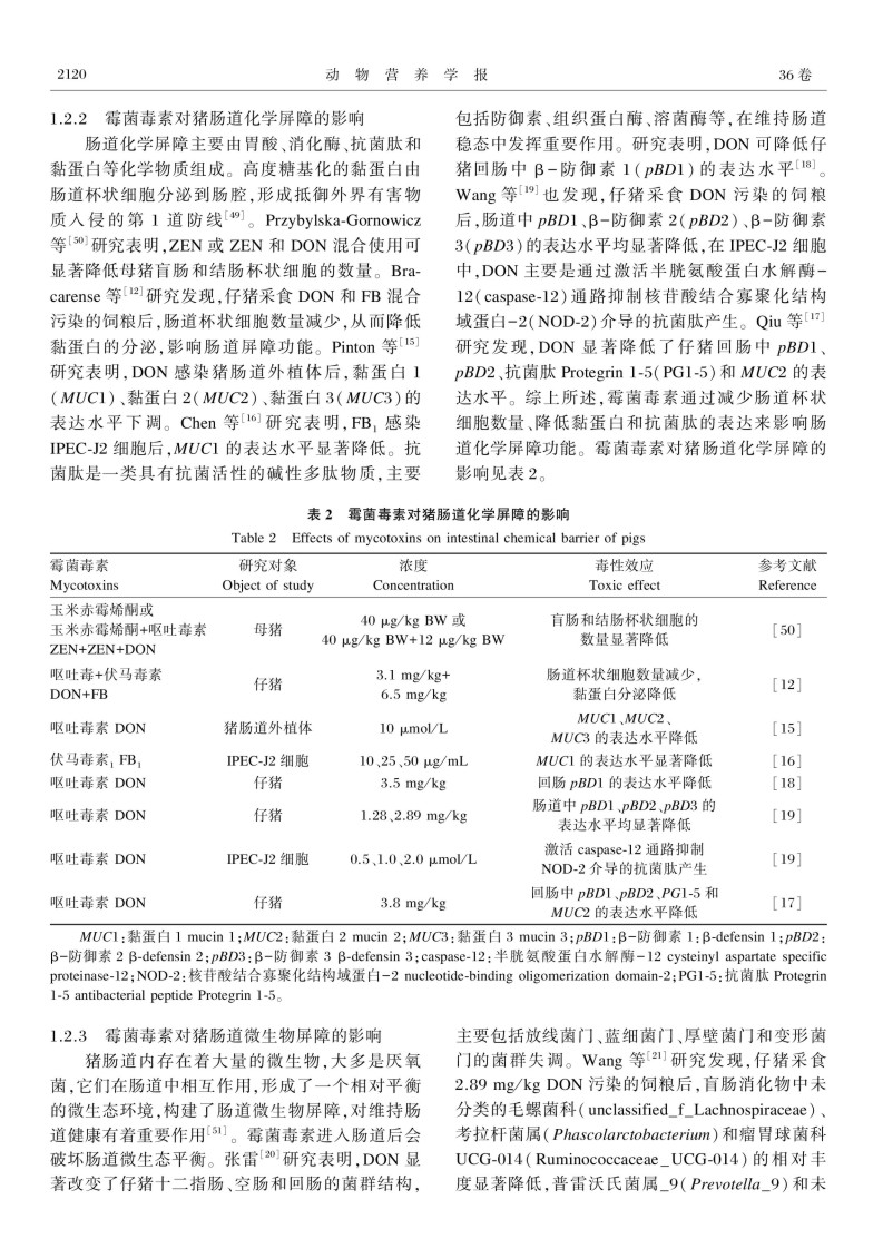 霉菌毒素对猪肠道健康的影响及其营养调控