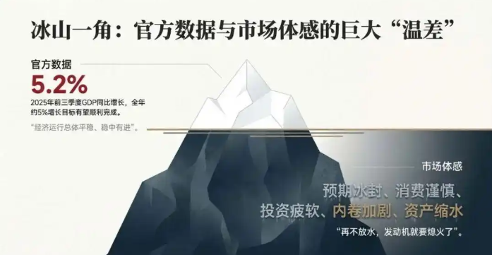 看数据,2025年我们的GDP保5%没问题,粮食二十二连丰,出口即使有摩擦也还在增长。但你走到街上去看一看,你问问身边的老板,问问找工作的大学生,问问背着房贷的中年人,大家的体感是什么?